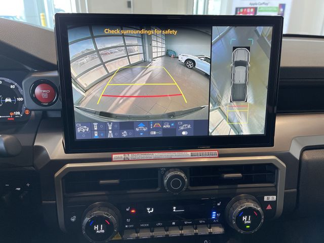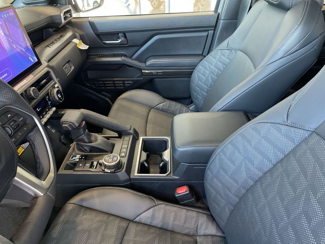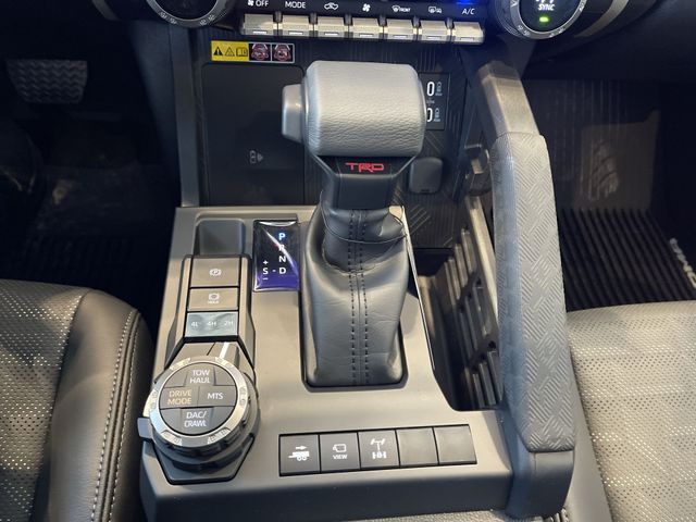 Towing Package (Integrated Trailer Brake Controller and Towing Hitch), TRD Off Road Premium Package (3D Multi-Terrain Monitor, 8-Way Power Driver & Passenger Seat Adjusters, Digital Rearview Mirror, Heated Front Seats, Heated Leather-Trimmed Steering Wheel, JBL Premium Audio, Low Auxiliary (30A) Switches, Power Horizontal Rear Window, Power Tilt/Slide Moonroof w/Sliding Sunshade, Pre-Wire Accommodation (Bed Power Port), Smart Key w/Digital Key Technology, and TACOMA Stamped Power Open & Close Tailgate), 4WD, 3.583 Axle Ratio, 4-Wheel Disc Brakes, 6 Speakers, ABS brakes, Air Conditioning, All Weather Floor Liners (TMS), Alloy wheels, AM/FM radio: SiriusXM, Anti-whiplash front head restraints, Apple CarPlay/Android Auto, Auto High-beam Headlights, Auto-dimming Rear-View mirror, Automatic temperature control, Black Badge Overlay (TMS), Black Tailgate Insert (TMS), Brake assist, Bumpers: body-color, Cast Aluminum Running Boards (TMS), Cross Model Suspension Kit w/2.5" Lift (TMS), Door Edge Guard (TMS), Door Panel Scuff Protector (TMS), Driver door bin, Driver vanity mirror, Dual front impact airbags, Dual front side impact airbags, Electronic Stability Control, Emergency communication system: Safety Connect (1-year trial), Exterior Parking Camera Rear, Fabric Seat Trim, Four wheel independent suspension, Front anti-roll bar, Front Bucket Seats, Front Center Armrest, Front fog lights, Front reading lights, Fully automatic headlights, Heated door mirrors, Illuminated entry, Knee airbag, Leather Shift Knob, Leather steering wheel, Long Bed w/Inverter, Low tire pressure warning, Mudguards (TMS), Multimedia Screen Protector - Glass (TMS), Occupant sensing airbag, Outside temperature display, Overhead airbag, Overhead console, Paint Protection Film (TMS), Panic alarm, Passenger door bin, Passenger vanity mirror, Phone Cables - Smart USB (TMS), Power door mirrors, Power steering, Power windows, Radio: 8" Toyota Audio Multimedia, Rear step bumper, Rear window defroster, Remote keyless entry, Security system, SofTex Seat Trim, Speed control, Speed-sensing steering, Split folding rear seat, Spray-On Bed Liner (TMS), Steering wheel mounted audio controls, Tachometer, Telescoping steering wheel, Tilt steering wheel, Traction control, Trip computer, Turn signal indicator mirrors, Variably intermittent wipers, and Wheels: 17" TRD Off-Road Alloy.