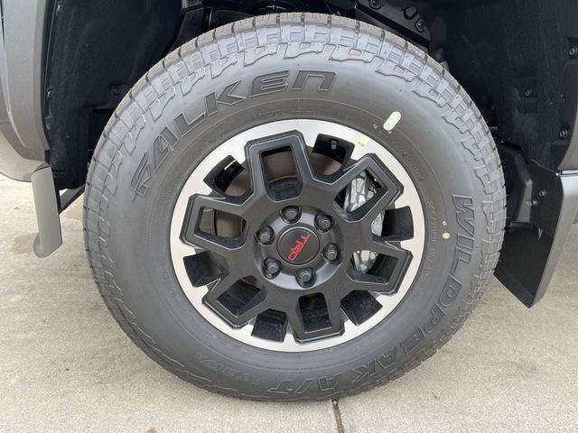 TRD Off Road Package, 2.4L 4-Cylinder, 18" Alloy Wheels, 3.583 Axle Ratio, 4-Wheel Disc Brakes, 6 Speakers, ABS brakes, Air Conditioning, All Weather Floor Liners, Alloy wheels, AM/FM radio: SiriusXM, Anti-whiplash front head restraints, Apple CarPlay/Android Auto, Auto High-beam Headlights, Auto-dimming Rear-View mirror, Automatic temperature control, Brake assist, Bumpers: body-color, Door Edge Guard, Driver door bin, Driver vanity mirror, Dual front impact airbags, Dual front side impact airbags, Electronic Stability Control, Emergency communication system: Safety Connect (up to 10-year trial subscription), Exterior Parking Camera Rear, Fabric Seat Trim, Four wheel independent suspension, Front anti-roll bar, Front Bucket Seats, Front Center Armrest, Front fog lights, Front reading lights, Fully automatic headlights, Heated door mirrors, Heated Front Seats, Illuminated entry, Illuminated Front Emblem Dark Chrome, JBL Premium Audio, Knee airbag, Leather Shift Knob, Leather steering wheel, Low tire pressure warning, Mudguards, Navigation system: Drive Connect Cloud Navigation (1-year trial subscription), Occupant sensing airbag, Outside temperature display, Overhead airbag, Overhead console, Panic alarm, Passenger door bin, Passenger vanity mirror, Power door mirrors, Power steering, Power windows, Radio: 14" Toyota Audio Multimedia, Radio: 8" Toyota Audio Multimedia, Radio: Premium Audio with 14" Display, Rear step bumper, Rear window defroster, Remote keyless entry, Security system, SofTex Seat Trim, Speed control, Speed-sensing steering, Split folding rear seat, Steering wheel mounted audio controls, Tachometer, Telescoping steering wheel, Tilt steering wheel, Traction control, Trip computer, Turn signal indicator mirrors, and Variably intermittent wipers.