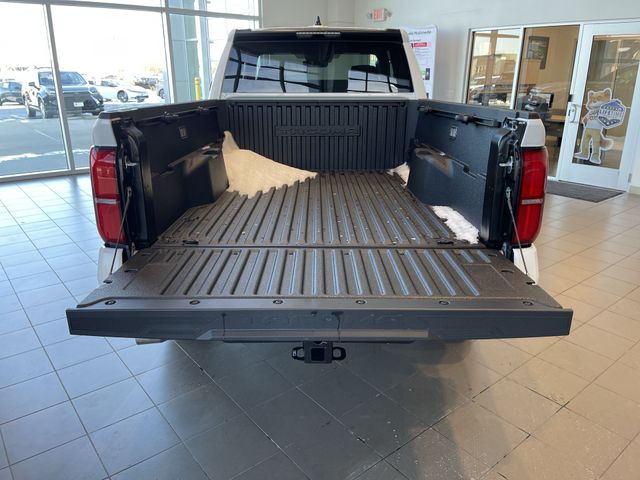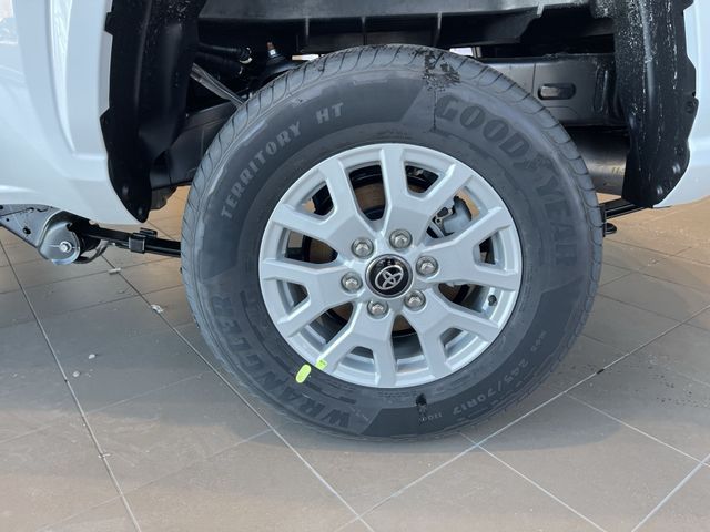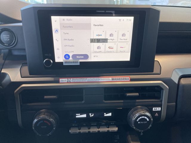 3.583 Axle Ratio, 4 Speakers, 4-Wheel Disc Brakes, ABS brakes, Air Conditioning, All Weather Floor Liners, Alloy wheels, AM/FM radio: SiriusXM, Anti-whiplash front head restraints, Apple CarPlay/Android Auto, Auto High-beam Headlights, Auto-dimming Rear-View mirror, Brake assist, Bumpers: body-color, Driver door bin, Dual front impact airbags, Dual front side impact airbags, Electronic Stability Control, Emergency communication system: Safety Connect (up to 10-year trial subscription), Exterior Parking Camera Rear, Fabric Seat Trim, Front anti-roll bar, Front Bucket Seats, Front Center Armrest, Front fog lights, Front reading lights, Front wheel independent suspension, Fully automatic headlights, Heated door mirrors, Illuminated entry, Knee airbag, Low tire pressure warning, Occupant sensing airbag, Outside temperature display, Overhead airbag, Overhead console, Panic alarm, Passenger door bin, Power door mirrors, Power steering, Power windows, Radio: 8" Toyota Audio Multimedia, Rear step bumper, Rear window defroster, Remote keyless entry, Speed control, Speed-sensing steering, Spray-on Bed Liner, Steering wheel mounted audio controls, Tachometer, Telescoping steering wheel, Tilt steering wheel, Traction control, Trip computer, Variably intermittent wipers, and Wheels: 17" Styled Alloy.