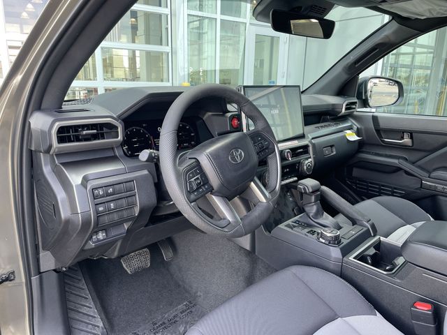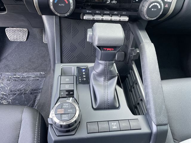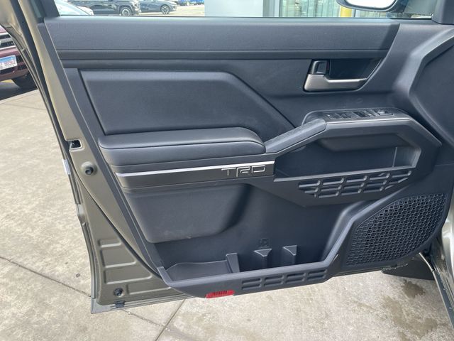 TRD Off Road Package, 4WD, 18" Wheels, 3.583 Axle Ratio, 4-Wheel Disc Brakes, 6 Speakers, ABS brakes, Air Conditioning, Alloy wheels, AM/FM radio: SiriusXM, Anti-whiplash front head restraints, Apple CarPlay/Android Auto, Auto High-beam Headlights, Auto-dimming Rear-View mirror, Automatic temperature control, Brake assist, Bumpers: body-color, Door Edge Guard, Driver door bin, Driver vanity mirror, Dual front impact airbags, Dual front side impact airbags, Electronic Stability Control, Emergency communication system: Safety Connect (up to 10-year trial subscription), Exterior Parking Camera Rear, Fabric Seat Trim, Four wheel independent suspension, Front anti-roll bar, Front Bucket Seats, Front Center Armrest, Front fog lights, Front reading lights, Fully automatic headlights, Heated door mirrors, Heated Seats, Illuminated entry, JBL Premium Audio, Knee airbag, Leather Shift Knob, Leather steering wheel, Low tire pressure warning, Mudguards, Occupant sensing airbag, Outside temperature display, Overhead airbag, Overhead console, Panic alarm, Passenger door bin, Passenger vanity mirror, Power door mirrors, Power steering, Power windows, Radio: 8" Toyota Audio Multimedia, Radio: Premium Audio with 14" Display, Rear step bumper, Rear window defroster, Remote keyless entry, Security system, SofTex Seat Trim, Speed control, Speed-sensing steering, Split folding rear seat, Spray-on Bed Liner, Steering wheel mounted audio controls, Tachometer, Telescoping steering wheel, Tilt steering wheel, Traction control, Trip computer, Turn signal indicator mirrors, and Variably intermittent wipers.