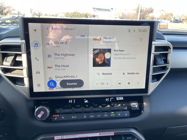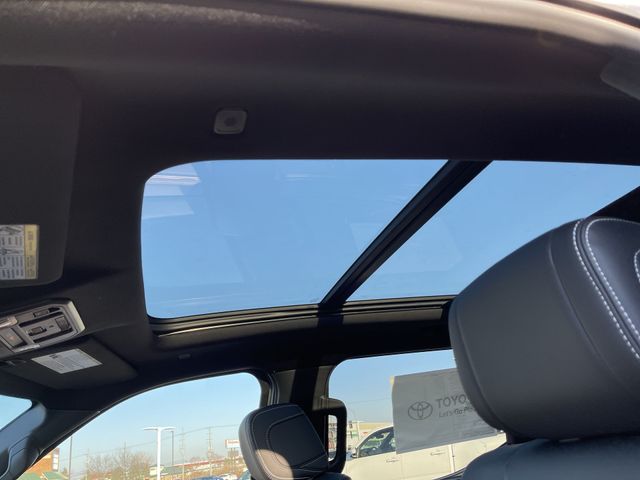 Nightshade Package (Wheels: 20" x 8J Matte Black TRD Sport Style), Panoramic View Monitor Package (Panoramic View Back Monitor), Premium Package (High Grade Full LED Headlamp), Towing Package, 4WD, Black Leather, 20" Alloy Wheels, 3.31 Axle Ratio, 4-Wheel Disc Brakes, 8-Way Power Adjustable Heated/Ventilated Front Seats, 9 Speakers, ABS brakes, Air Conditioning, All Weather Floor Liners, Alloy wheels, AM/FM radio: SiriusXM, Apple CarPlay/Android Auto, Auto High-beam Headlights, Auto-dimming door mirrors, Auto-dimming Rear-View mirror, Automatic temperature control, Bed Step, Blind Spot Monitor, Brake assist, Bumpers: body-color, Delay-off headlights, Driver door bin, Driver vanity mirror, Dual front impact airbags, Dual front side impact airbags, Electronic Stability Control, Emergency communication system: Safety Connect (up to 10-year trial subscription), Exhaust Tip - Black Chrome, Exterior Parking Camera Rear, Folding Color-Keyed Outside Mirrors, Front anti-roll bar, Front Bucket Seats, Front Center Armrest, Front dual zone A/C, Front fog lights, Front reading lights, Front wheel independent suspension, Fully automatic headlights, Garage door transmitter: HomeLink, Heated door mirrors, Heated front seats, Heated Leather Steering Wheel, Illuminated entry, JBL Premium Audio, Knee airbag, Leather Seat Trim, Leather Shift Knob, Leather steering wheel, Low tire pressure warning, Memory seat, Multi-Terrain Back Monitor, Navigation system: Drive Connect Cloud Navigation (1-year trial subscription), Occupant sensing airbag, Outside temperature display, Overhead airbag, Overhead console, Panic alarm, Panoramic Sunroof and Moonroof, Passenger door bin, Passenger vanity mirror, Power door mirrors, Power driver seat, Power passenger seat, Power steering, Power windows, Predator Drop Step, Radio data system, Radio: Audio Plus, Rear reading lights, Rear seat center armrest, Rear step bumper, Rear window defroster, Remote keyless entry, Safety Connect, Security system, Speed control, Speed-sensing steering, Split folding rear seat, Stainless Steel Door Edge Guards, Steering wheel mounted audio controls, Tachometer, Tailgate Insert - Black, Telescoping steering wheel, Tilt steering wheel, Traction control, TRD 3" Lift Kit, Tri-Fold Tonneau Cover, Trip computer, Turn signal indicator mirrors, Variably intermittent wipers, Ventilated front seats, Voltmeter, and Wheel Locks.