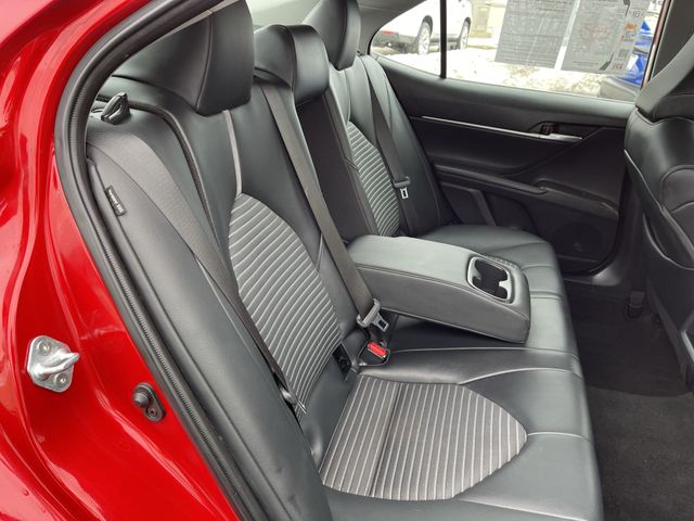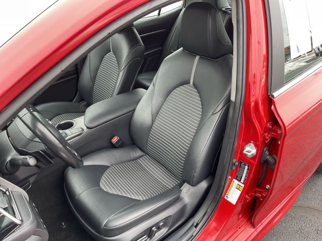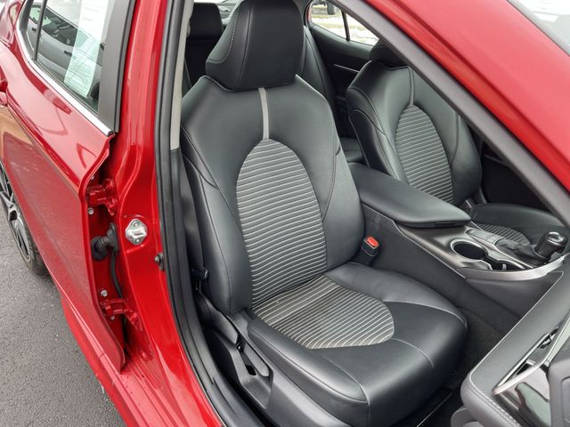 The interior of this Camry SE is a true haven of comfort and convenience. Sink into the supportive sport SofTex-trimmed seats with fabric inserts, and take advantage of the convenient steering wheel-mounted audio controls and the intuitive touchscreen infotainment system.