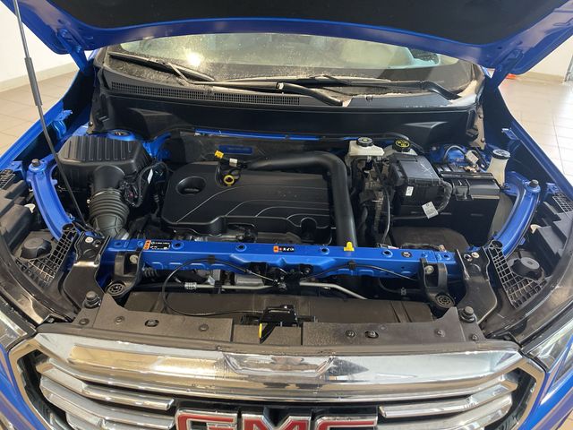 The interior of this Terrain SLT is a true haven of comfort and convenience. Slip into the perforated leather-appointed seats and let the 8-way power driver's seat with memory function mold to your preferences. Stay connected with the advanced GMC Infotainment System, complete with an 8-inch display, wireless Apple CarPlay, and Android Auto integration.
